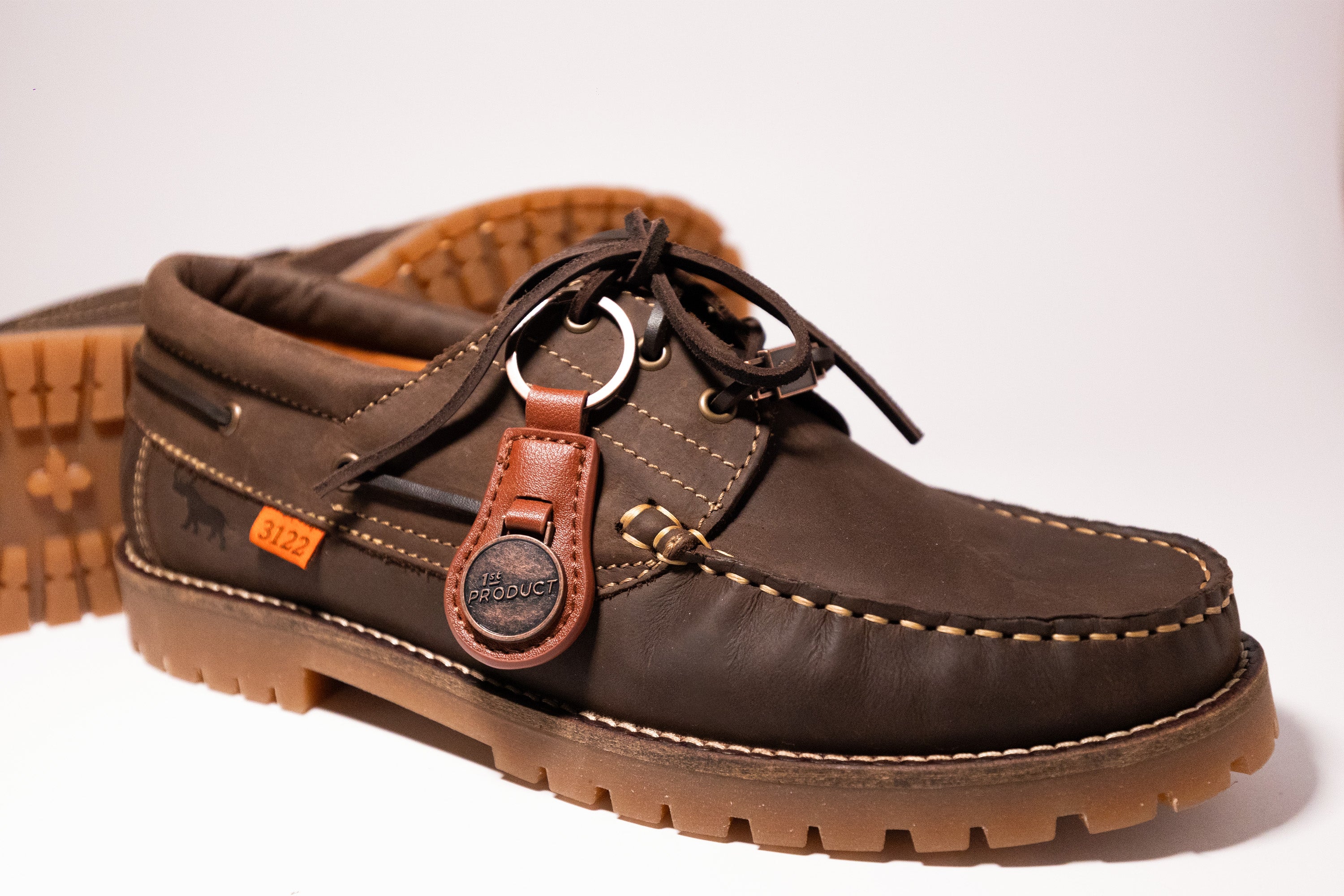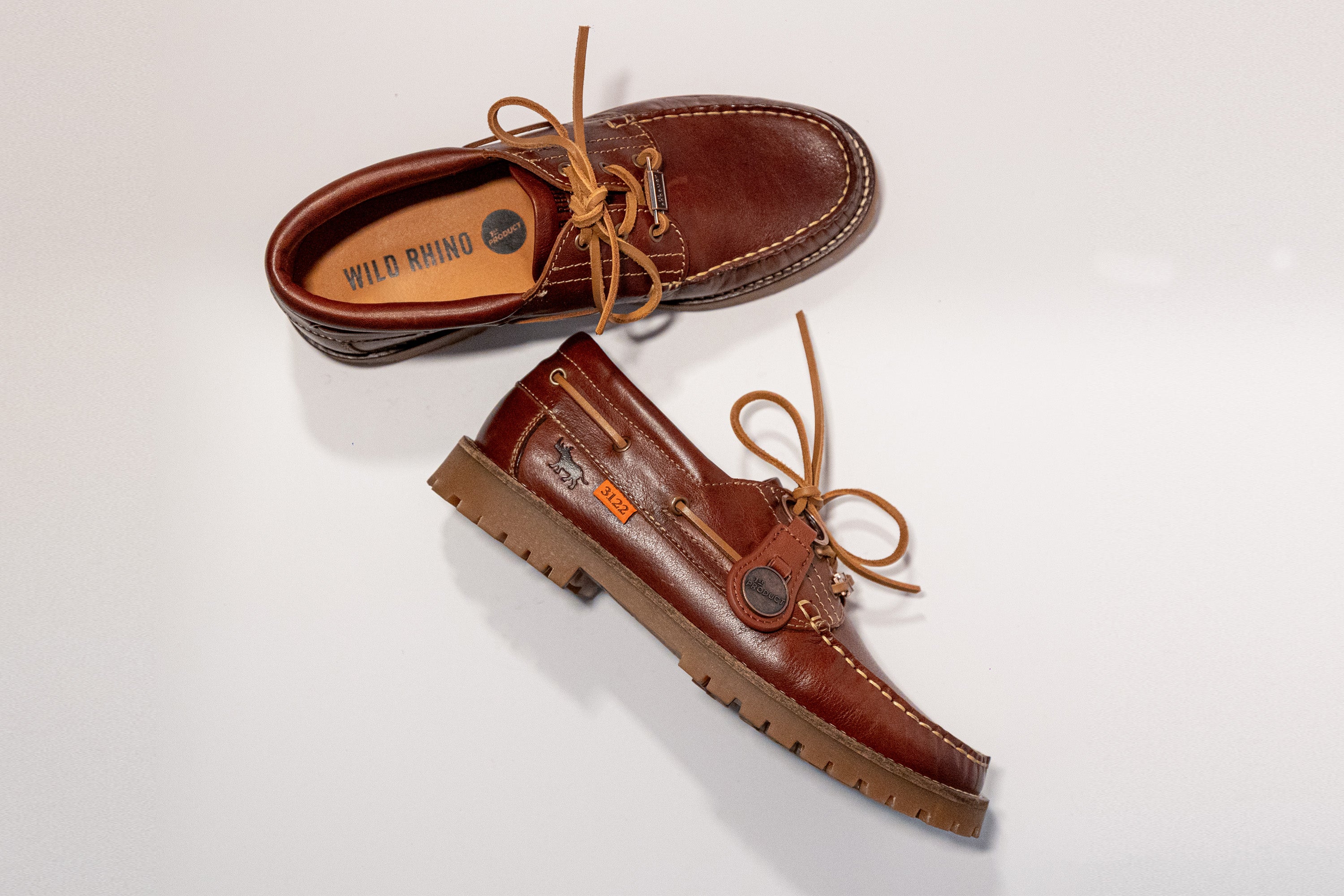 1ST PRODUCT + WILD RHINO PEAKED 3 EYE LUG MOC BOAT - DARK BROWN