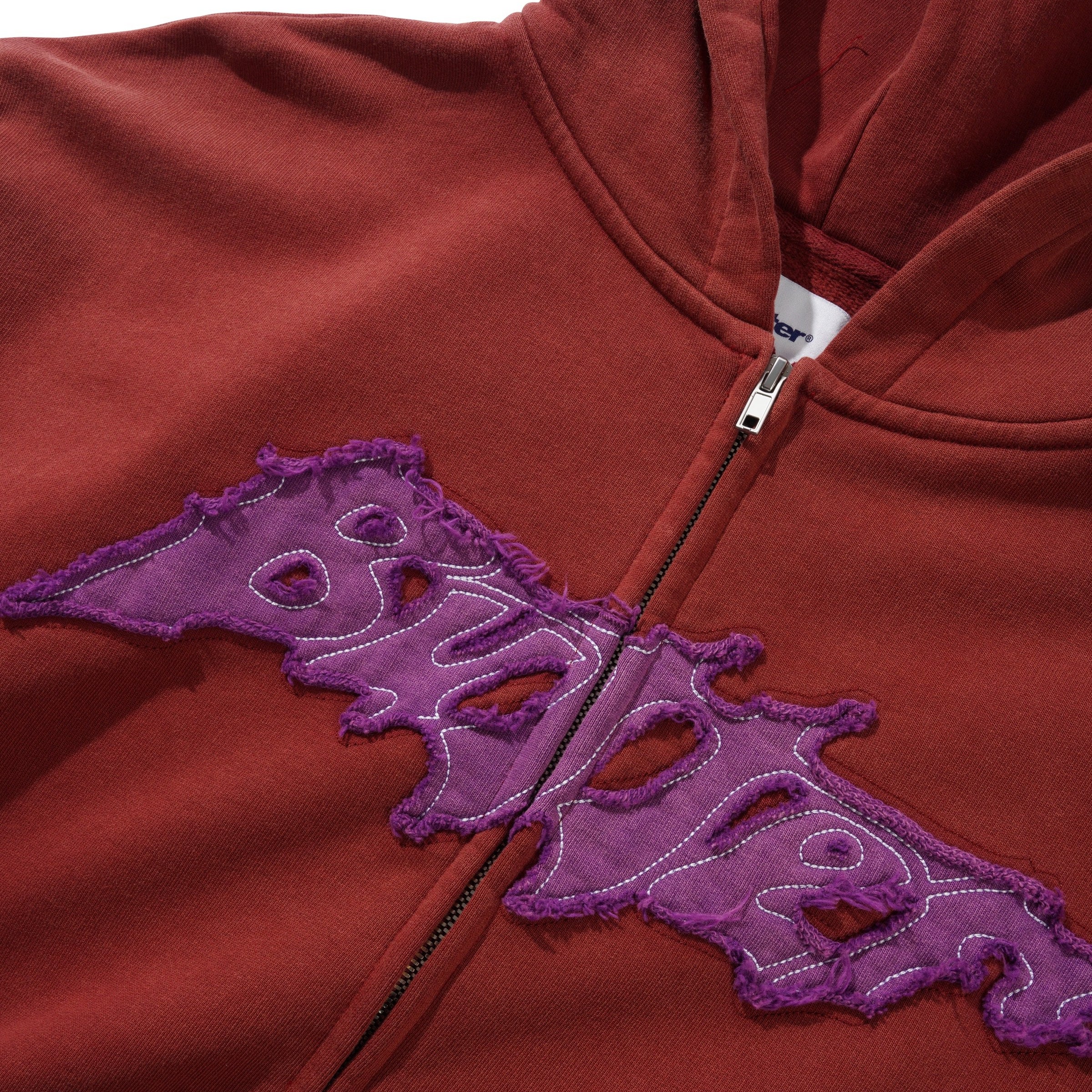 BUTTER GARAGE ZIP-THROUGH HOODIE - FADED BURGUNDY