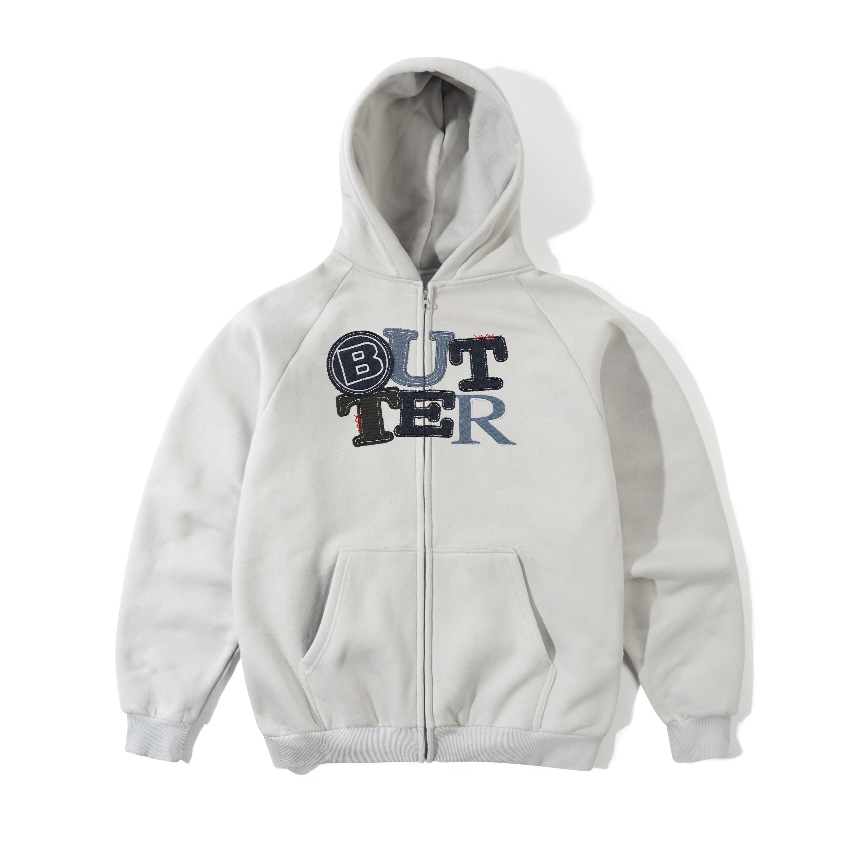 BUTTER PATCHWORK ZIP THRU HOODIE - CEMENT