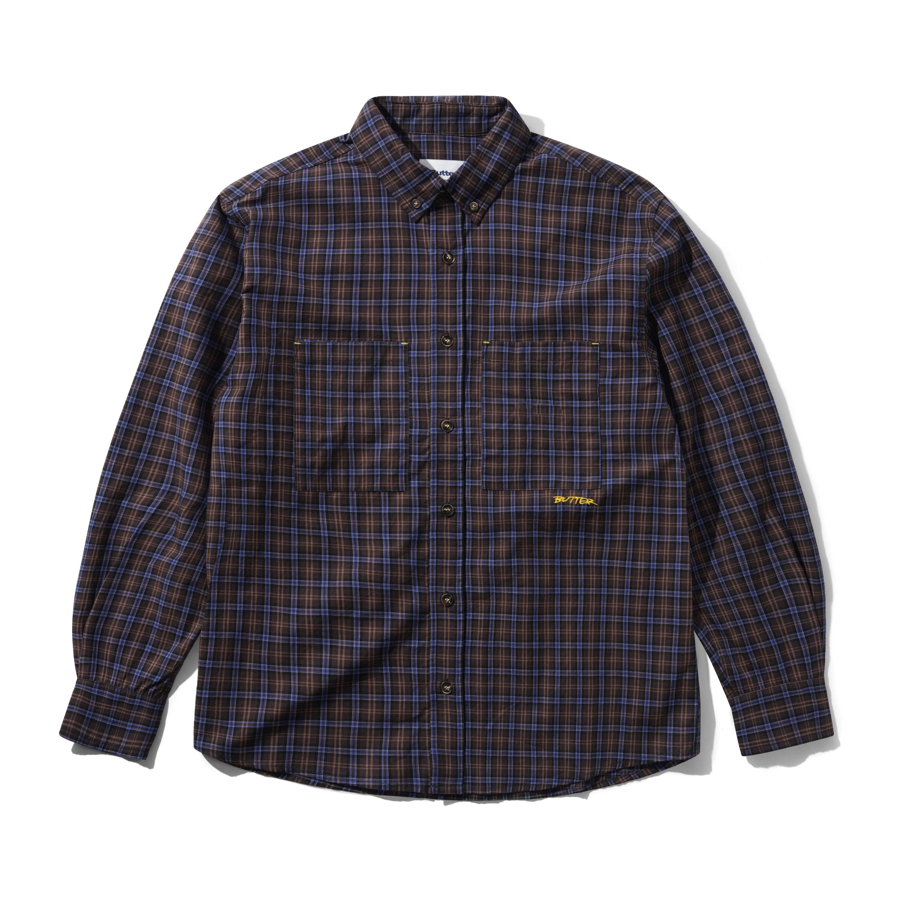 BUTTER PLAID LS SHIRT - BROWN / COBALT BLUE