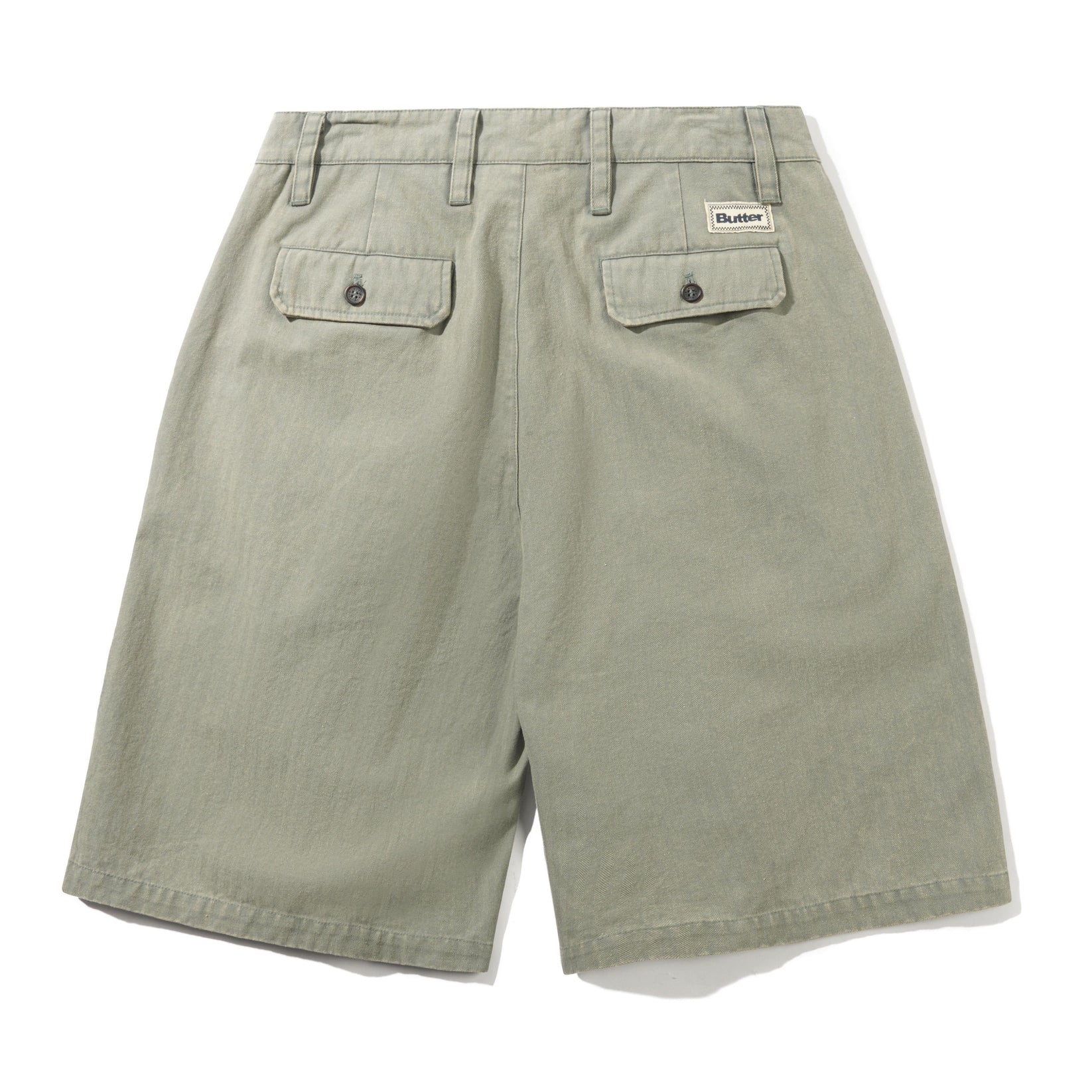 BUTTER PLEATED BAGGY SHORTS - WASHED FATIGUE SAGE GREEN