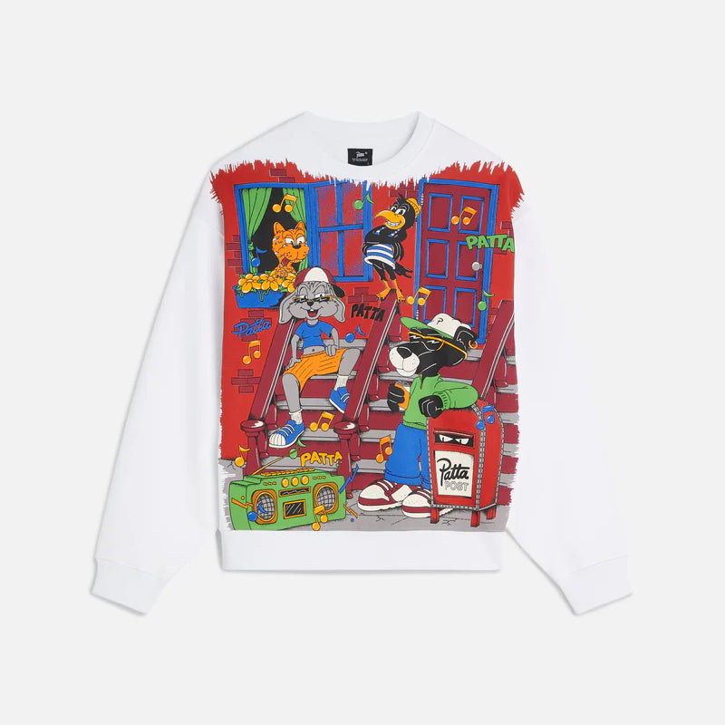 PATTA BLOCK PARTY CREWNECK SWEATER - LIGHT GREY MELANGE / WHITE