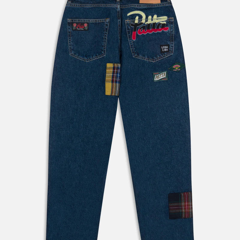 PATTA WHOLE LOTTA LOVE LABELS DENIM PANT - BLUE