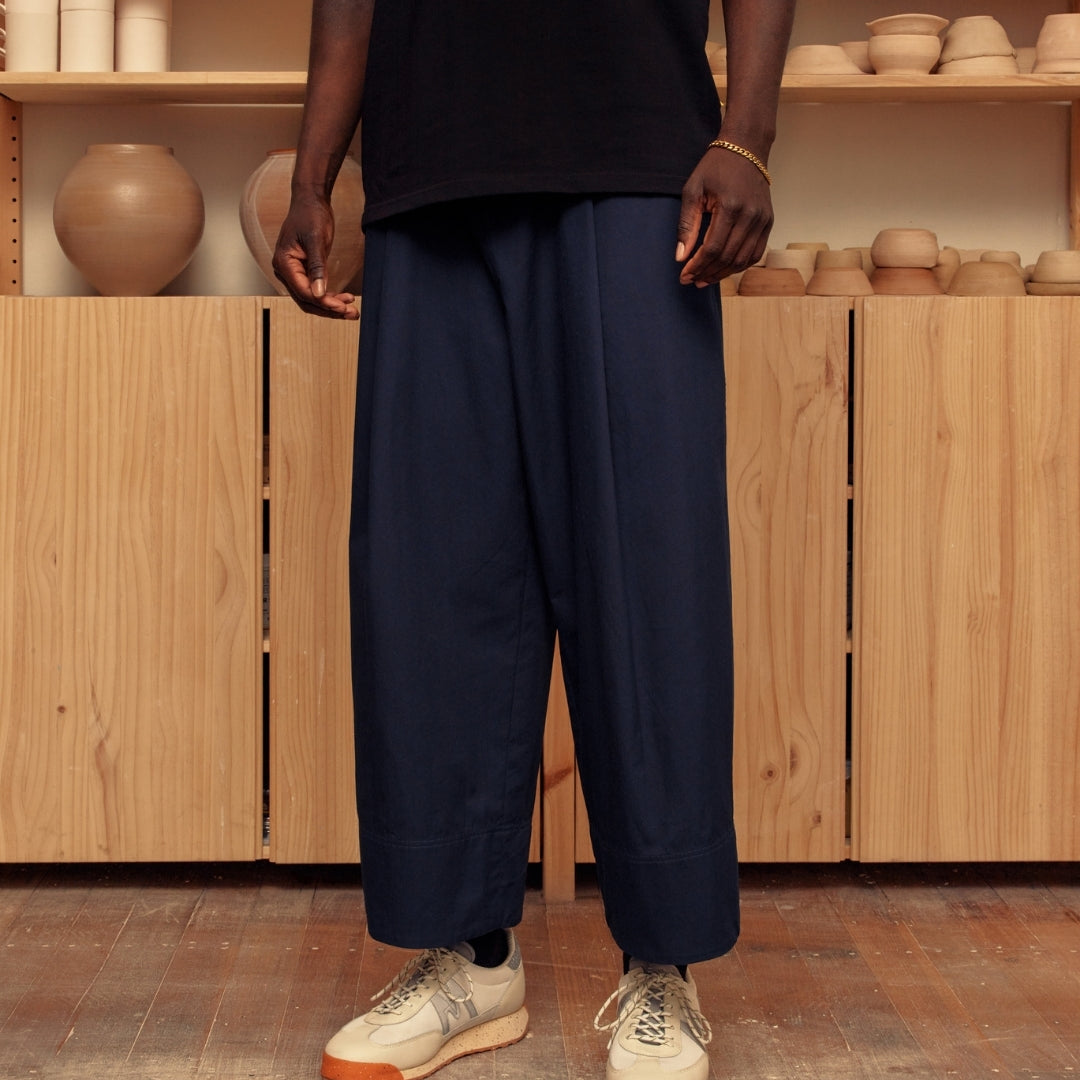 LOWF KYOTO BOX PLEAT PANTS - MIDNIGHT NAVY
