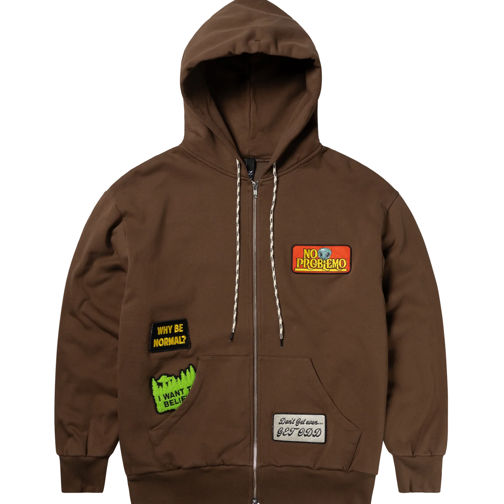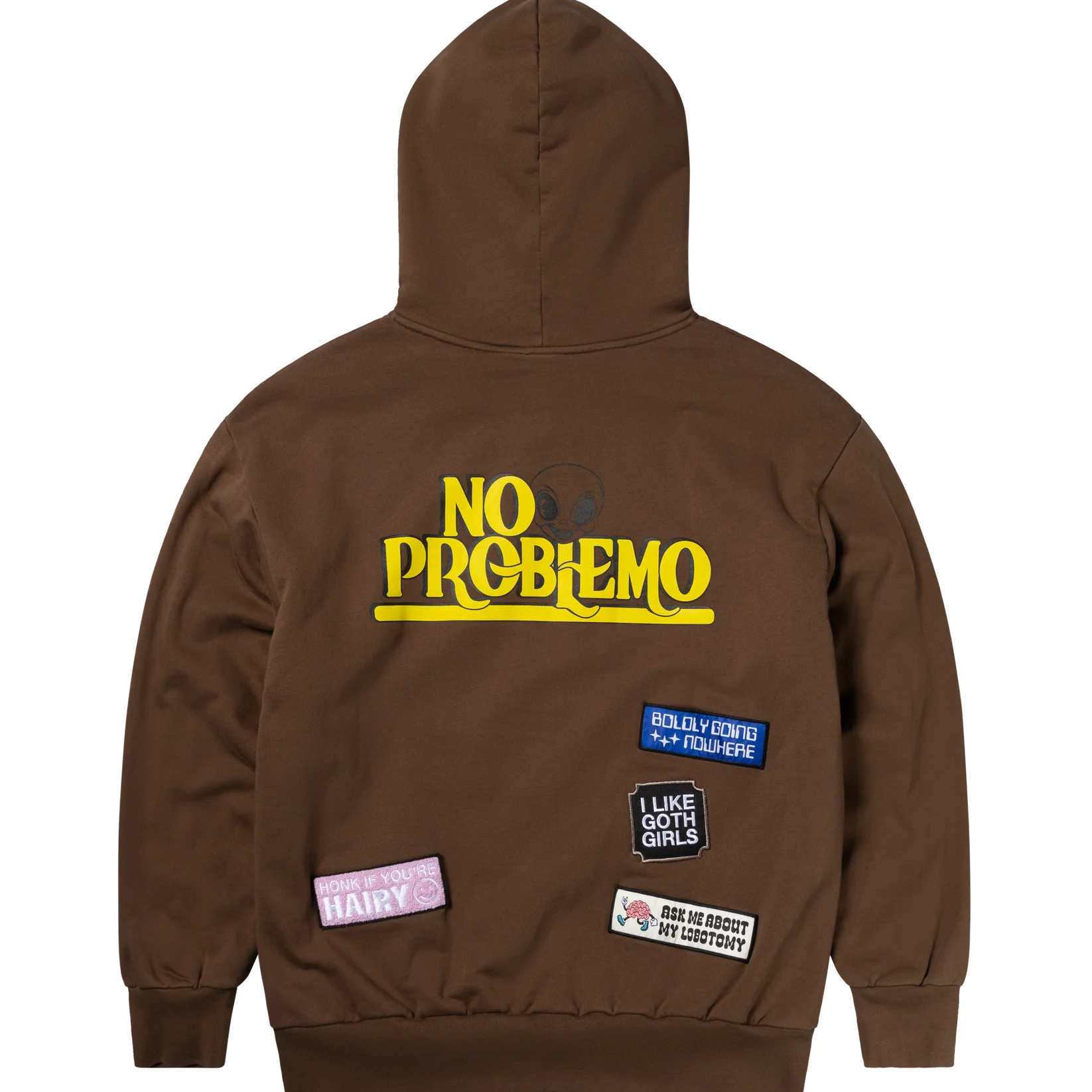 NO PROBLEMO STICKER ZIP THRU HOODIE - BROWN