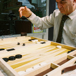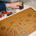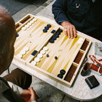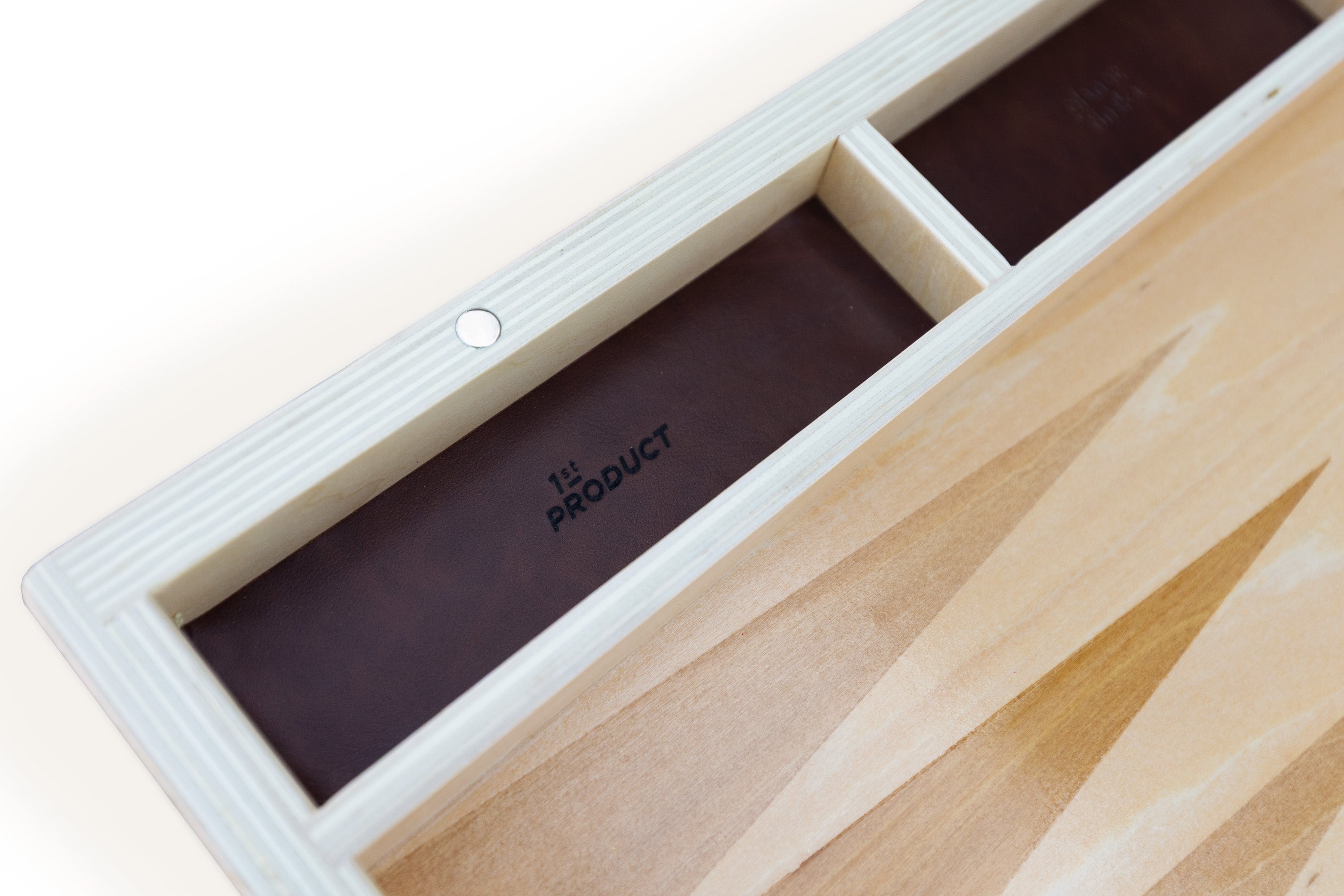 For our inaugural 1st PRODUCT 15 YEARS - HISTORY MATTERS product, we’ve partnered with Classic Games company Planet Finska to bring you a twist on their timeless backgammon board, meticulously crafted using eco-friendly materials. Hand customised by our close friend and artist, Jake Sugar, known for his one-of-one bespoke pieces, these boards are a testament to craftsmanship. Jake has carefully stained each piece, paired with custom dice, and adorned with accents of 24K gold.