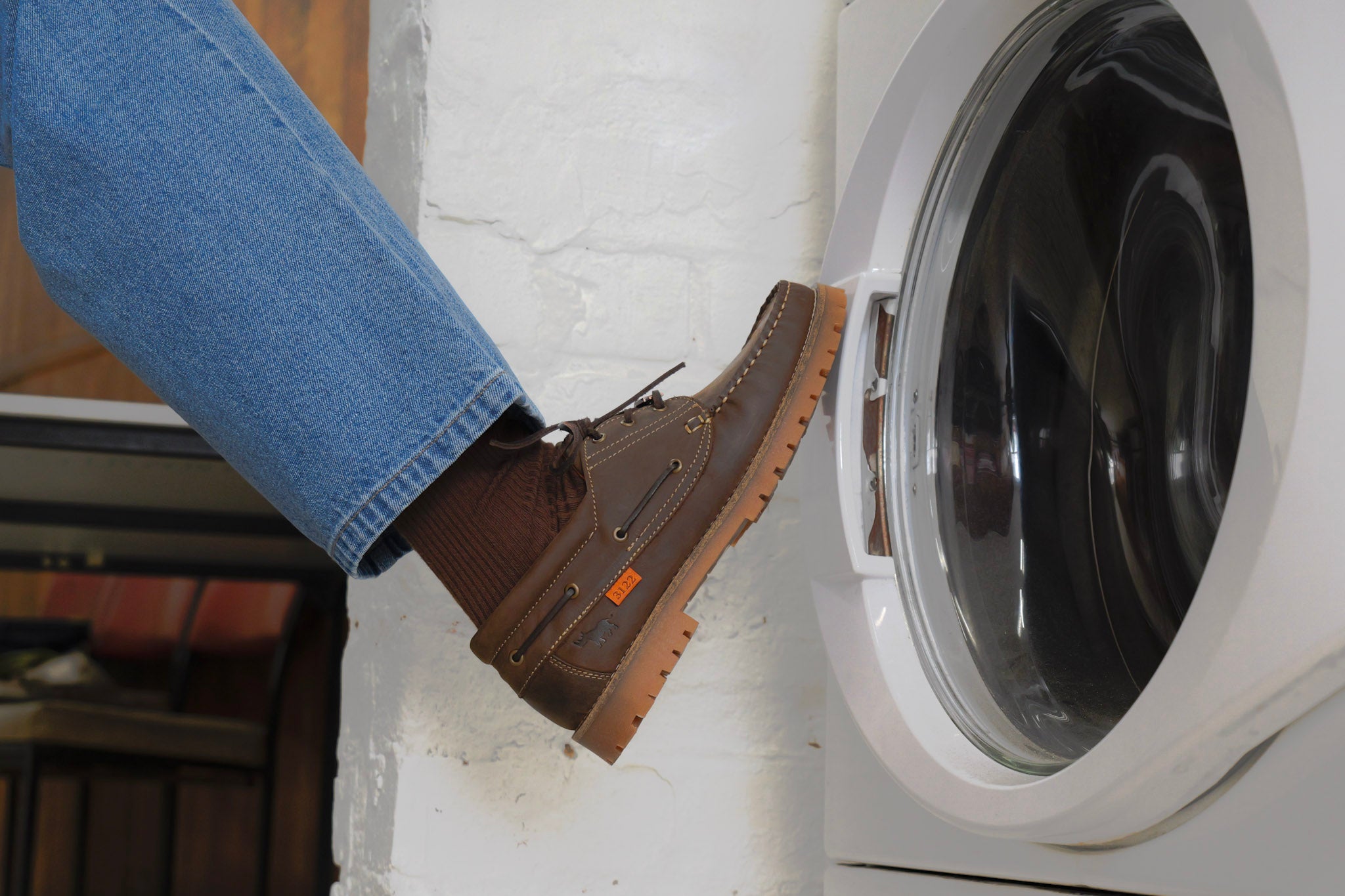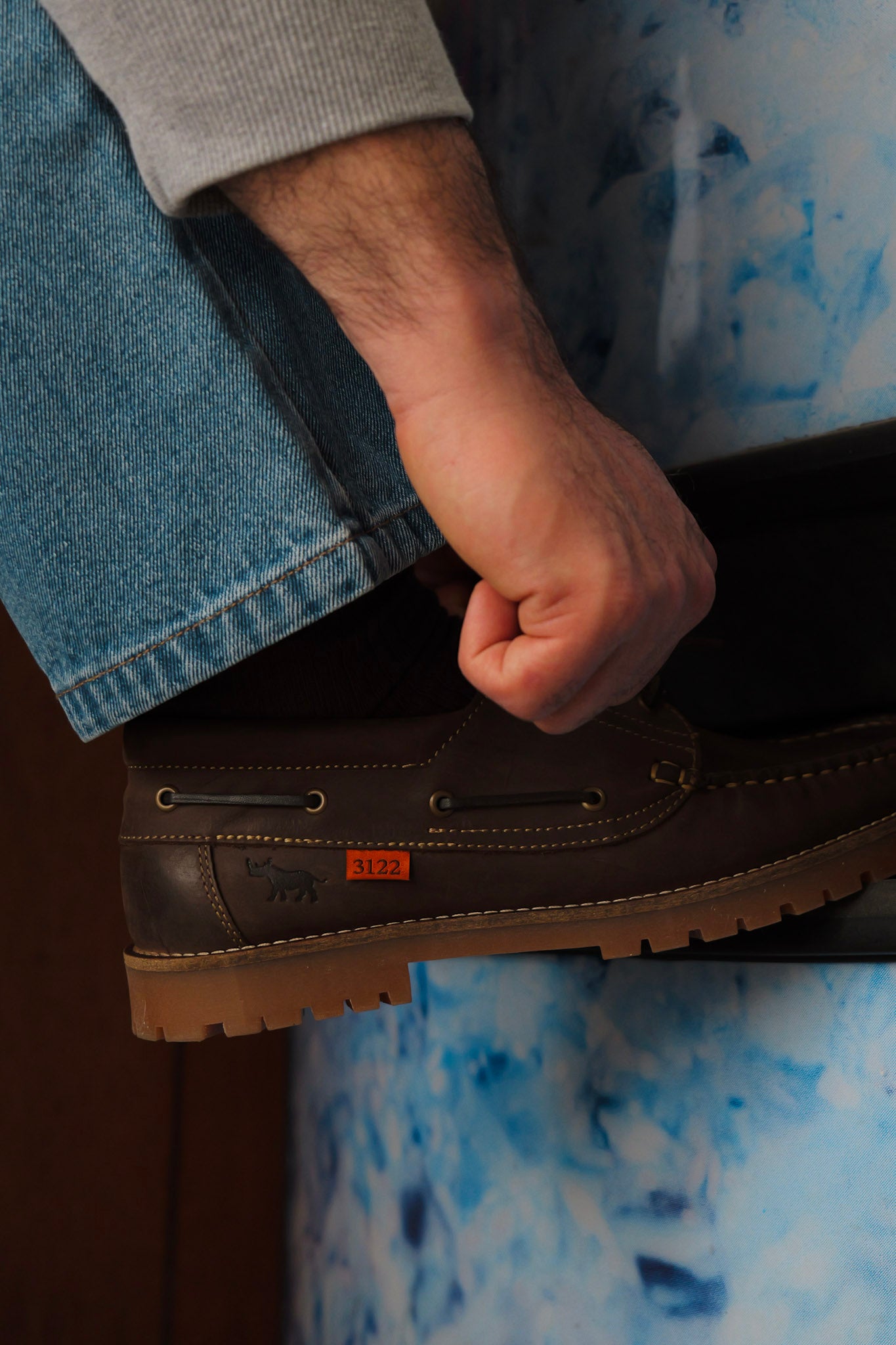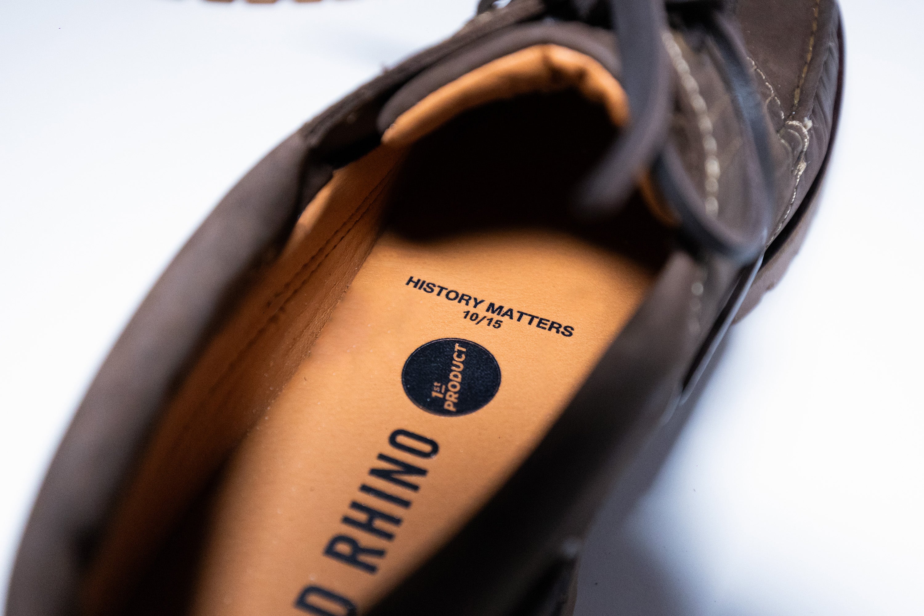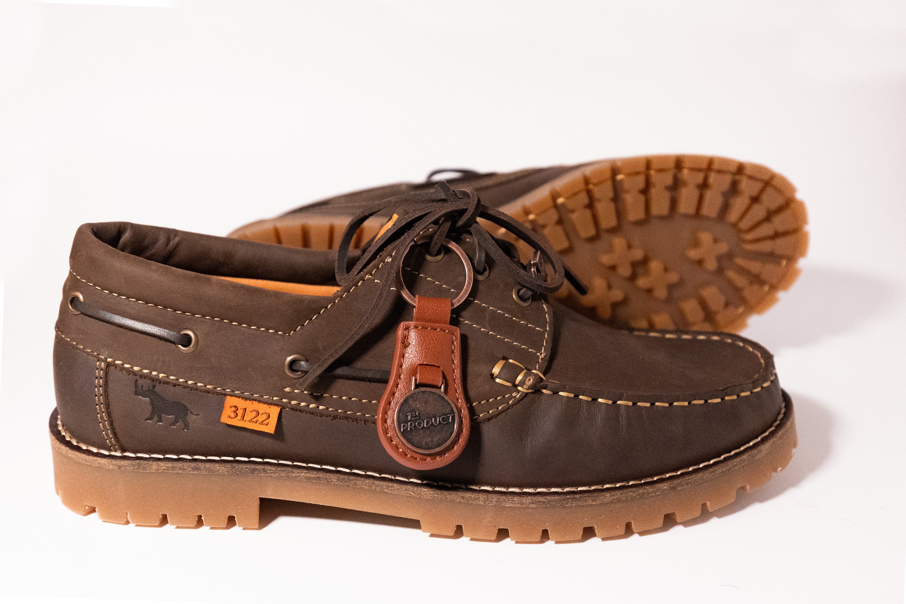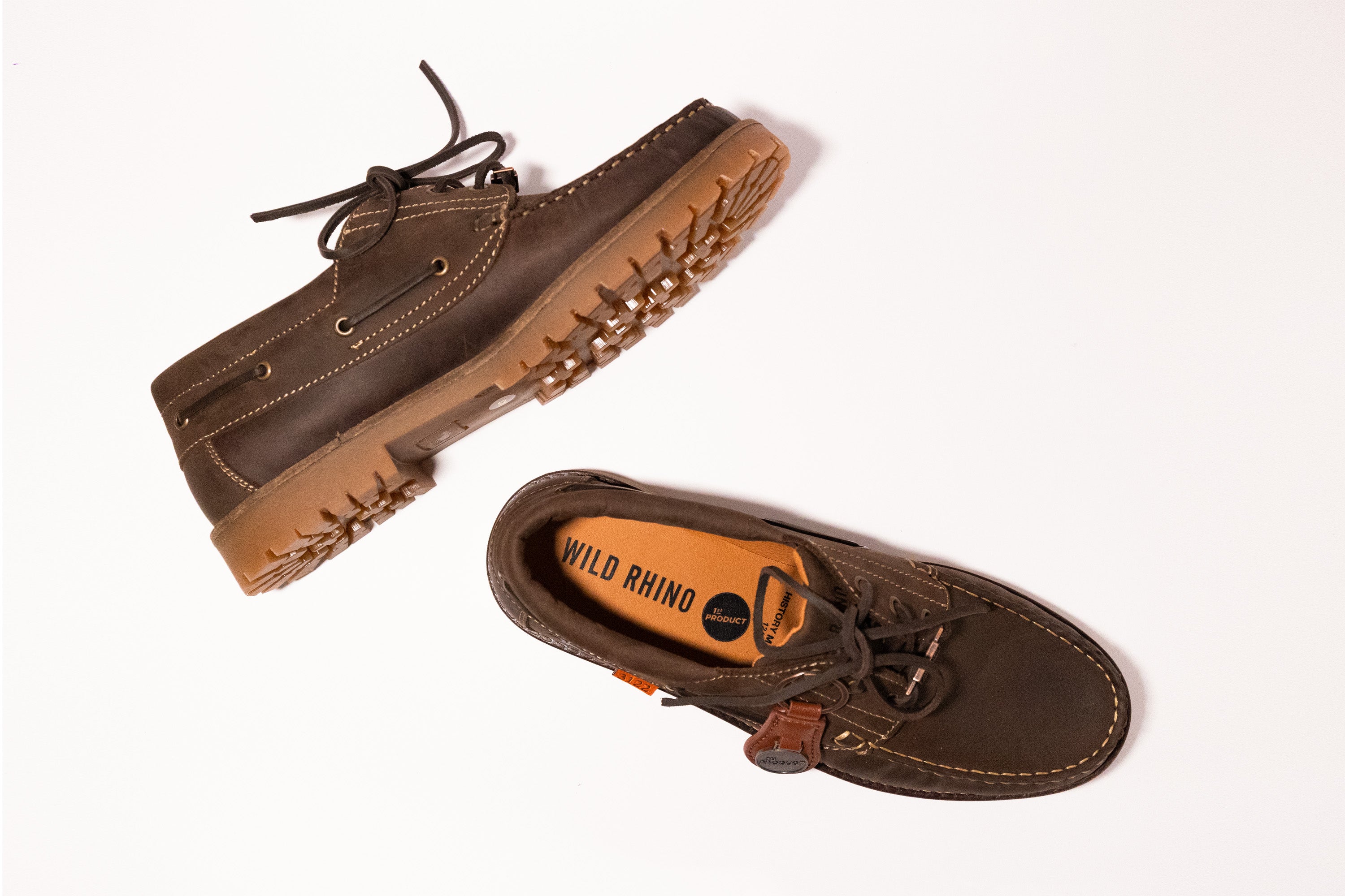 Made from Premium Portuguese Leather with signature gum rubber outsole, our 1st Product + Wild Rhino® Peaked 3 Eye Lug Boat Shoe is authentic to its core. Hand sewn in Portugal with its classic moc toe , padded leather collar, leather lining, and rawhide laces, this classic is a staple for every man's closet. By purchasing this product, you are supporting Leather Working Group certified tanneries.