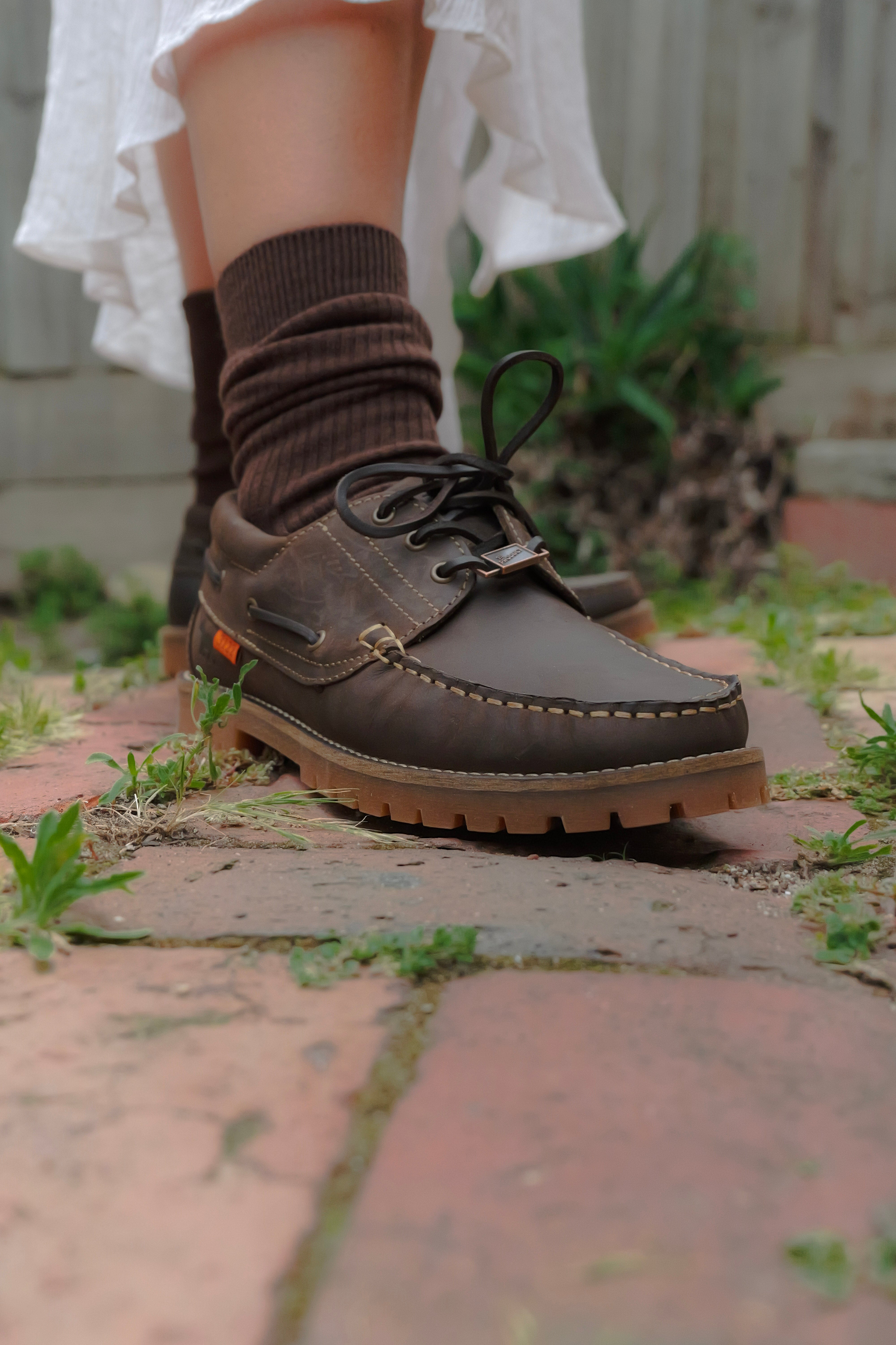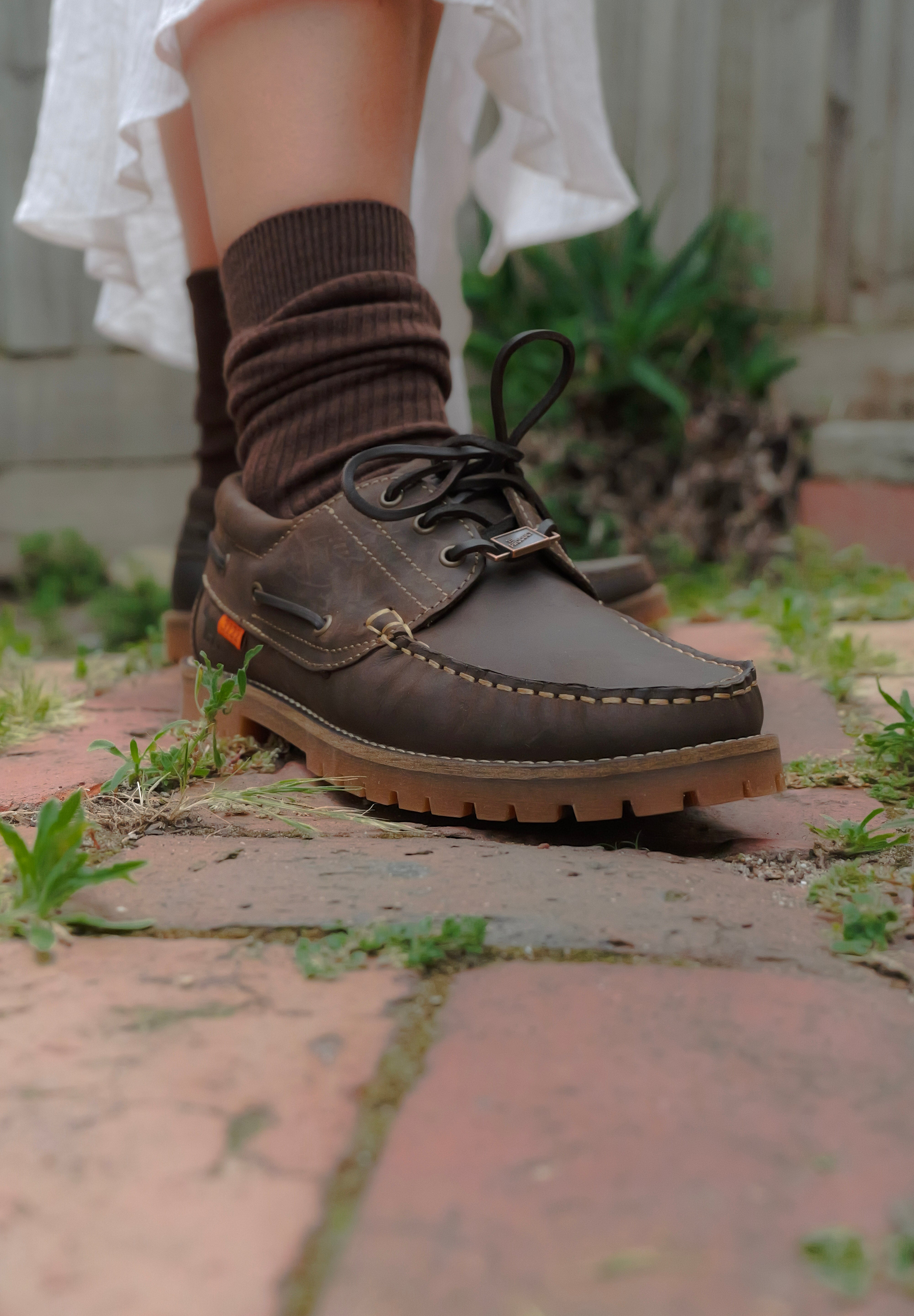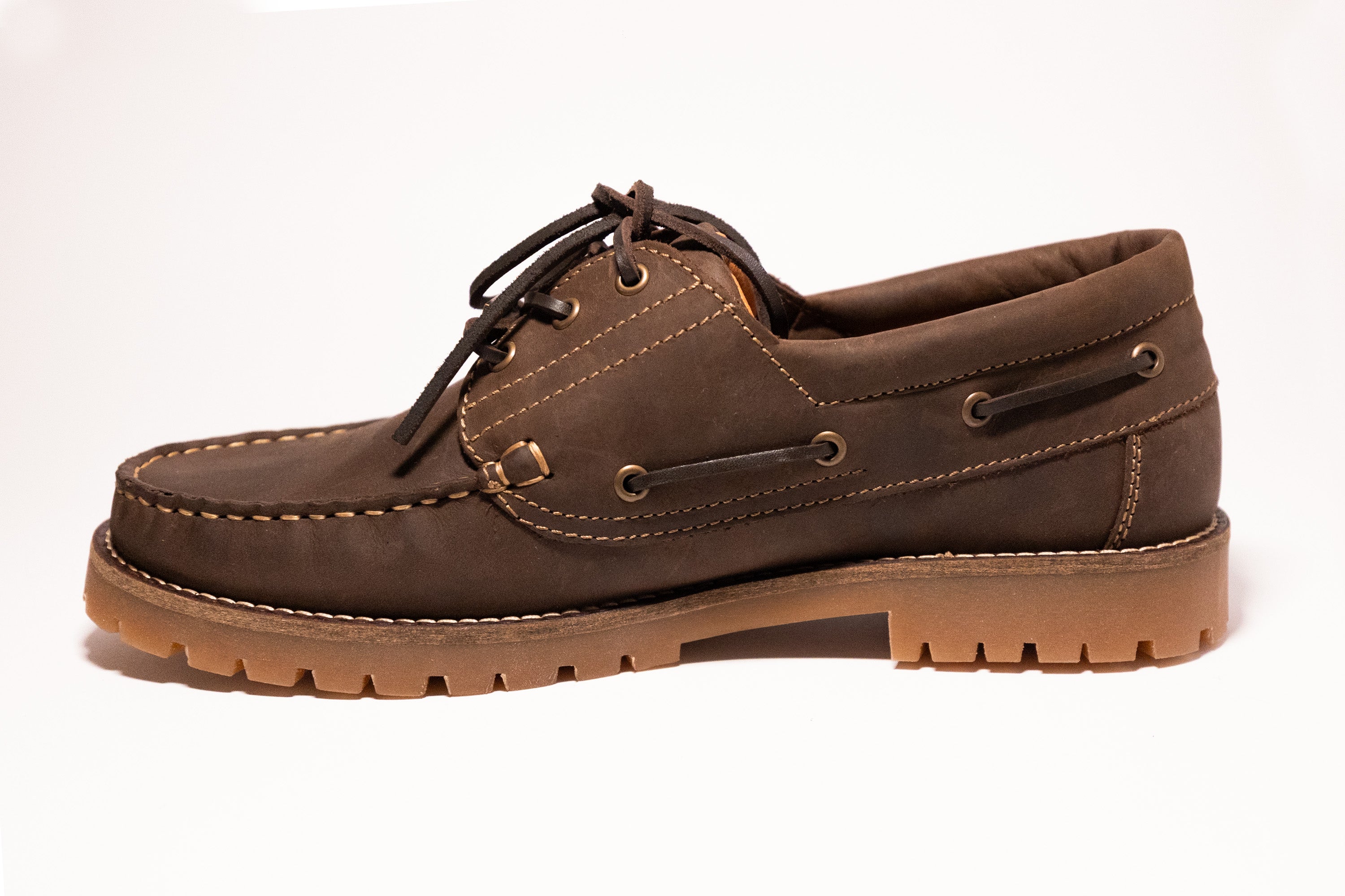 1ST PRODUCT + WILD RHINO PEAKED 3 EYE LUG MOC BOAT - DARK BROWN