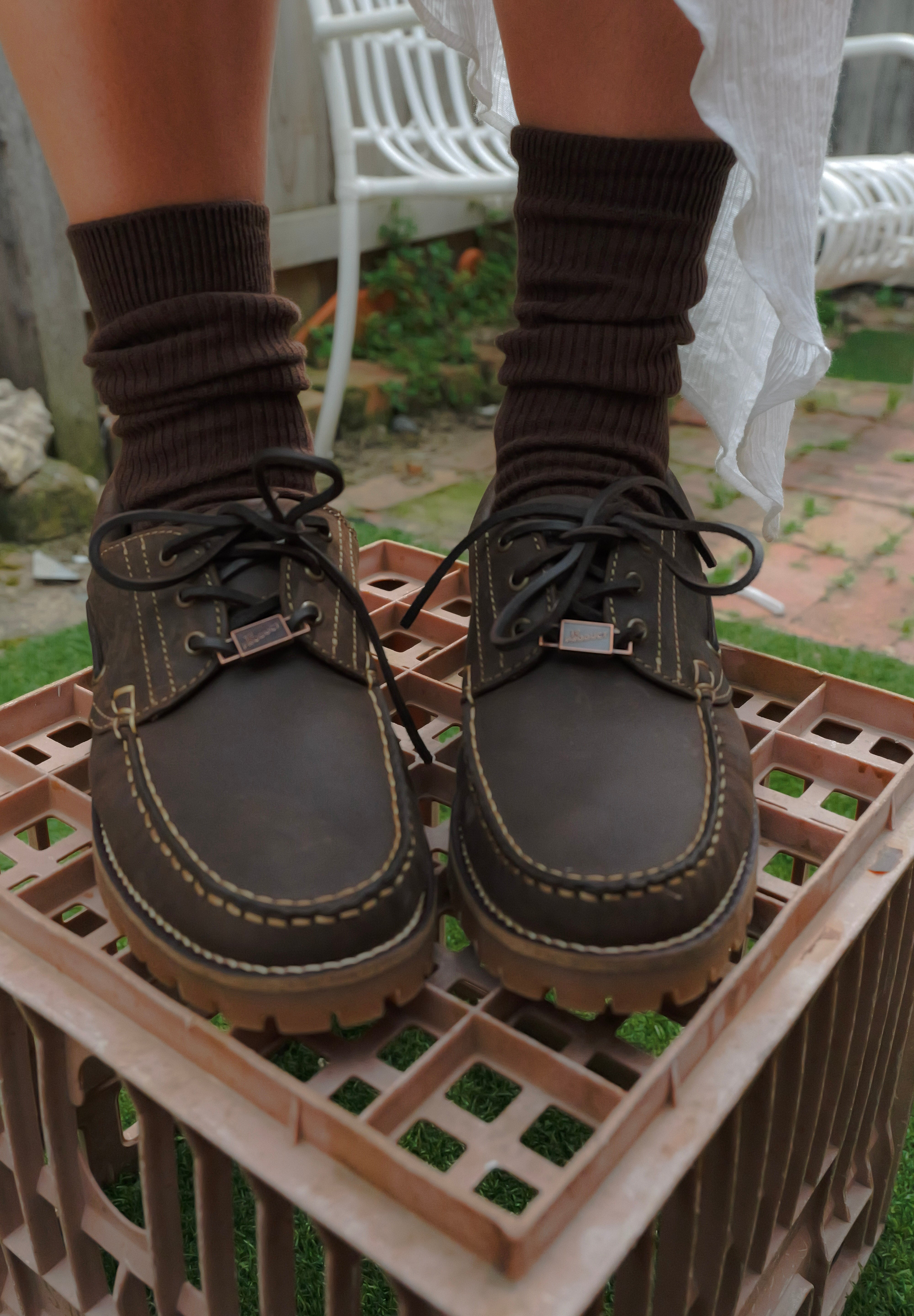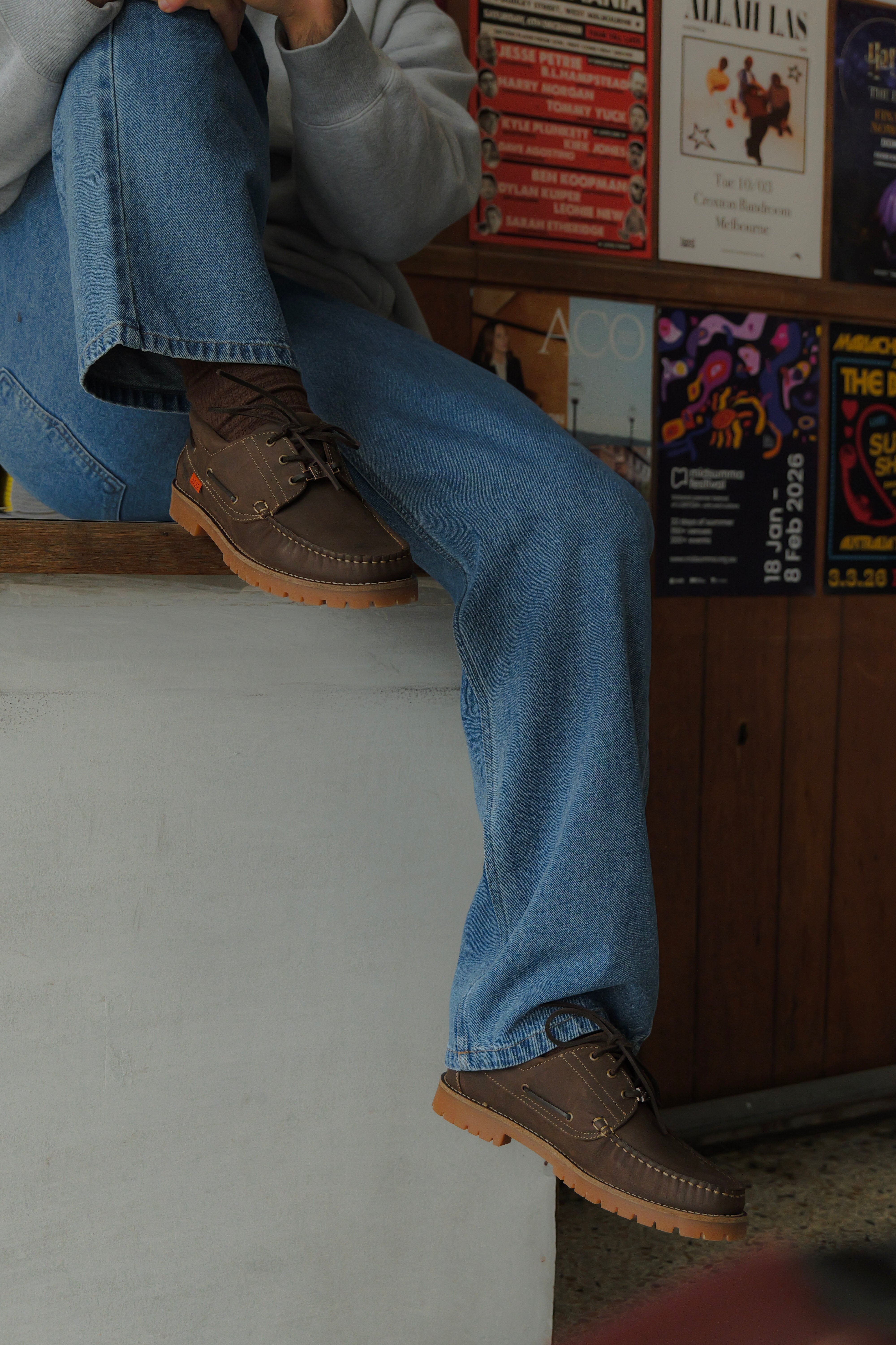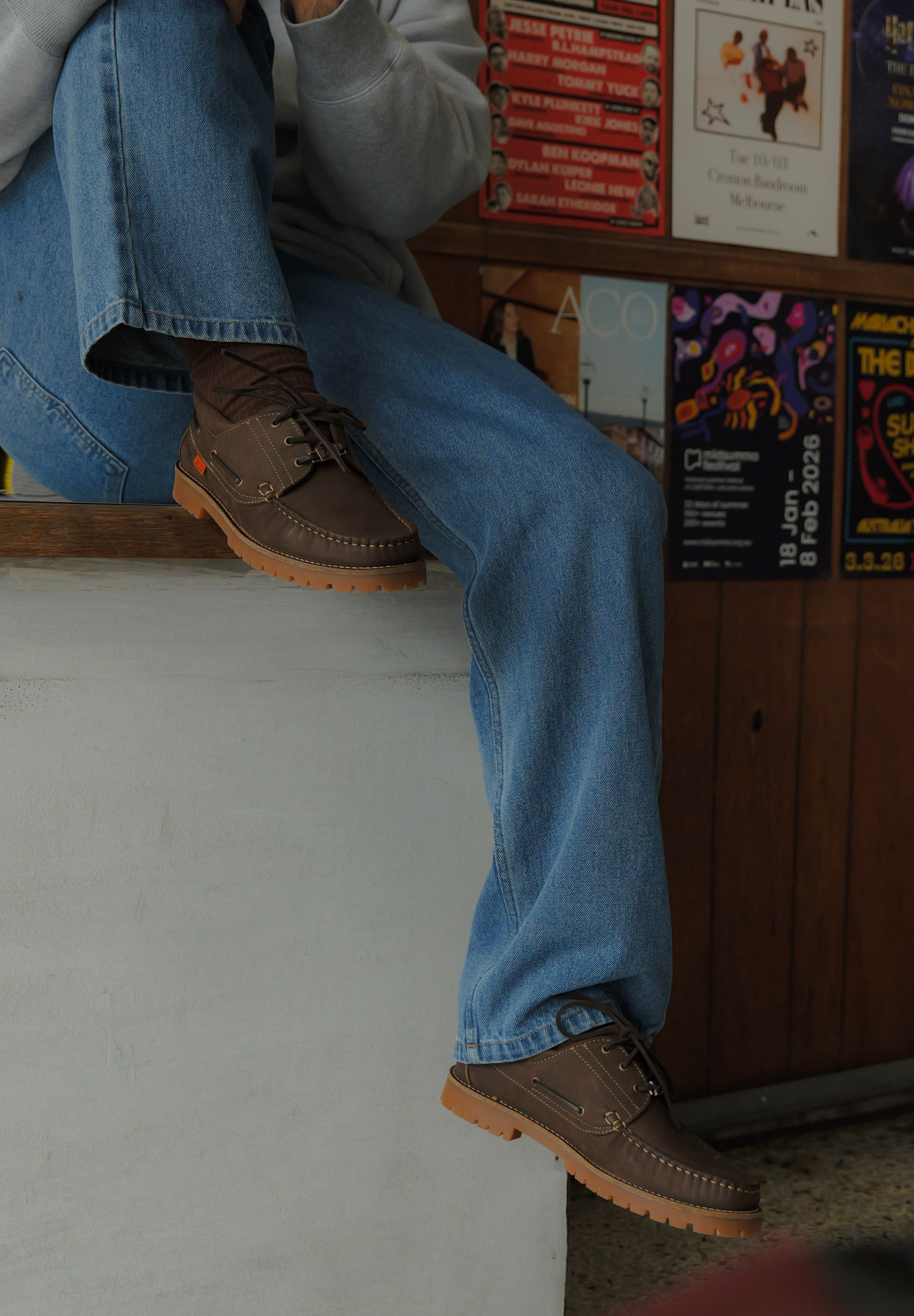 1ST PRODUCT + WILD RHINO PEAKED 3 EYE LUG MOC BOAT - DARK BROWN