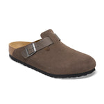 The Birkenstock Boston is a practical classic. Slip them on and you're off! The sophisticated, individual design means the Boston can be worn all year round, giving this style a legendary status for seasonal versatility. The upper suede lends an effortless feel to the style, with an oiled leather strap for a heritage touch. The anatomically shaped footbed and roomy toe box makes them comfortable to wear creating a pleasant environment for the entire foot.