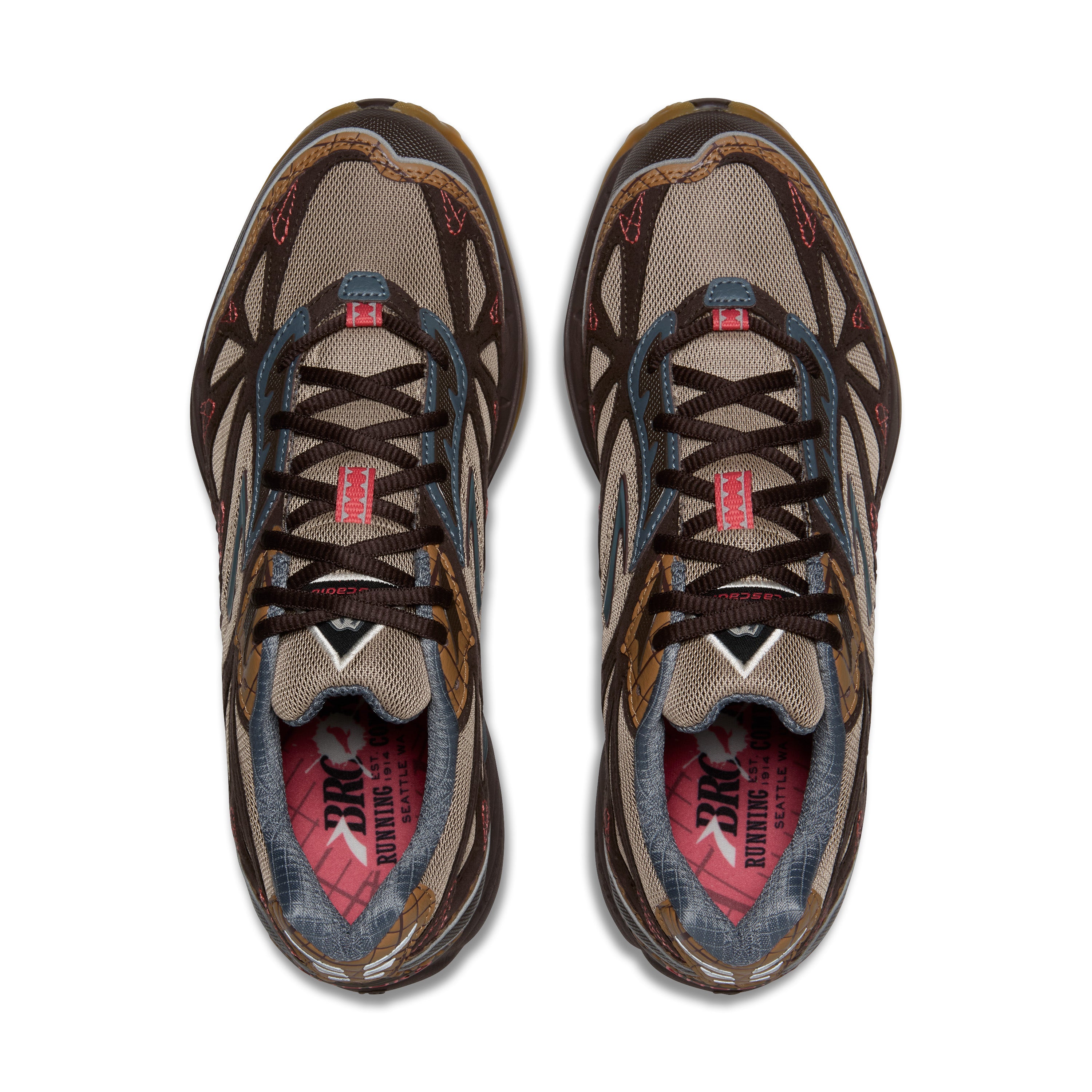 trail running, combining Brooks's long-standing off-road technology with Staple's signature urban sensibility. The lineup includes two models: the Cascadia 1, a classic from the brand's archives, and the Ghost Trail, a new model debuting ahead of the brand's full-scale launch in Japan. The design, based on earth tones inspired by the rugged natural landscape of the trails and accented with Staple's signature pigeon pink and gray, creates a modern finish that seamlessly connects the field and the city.