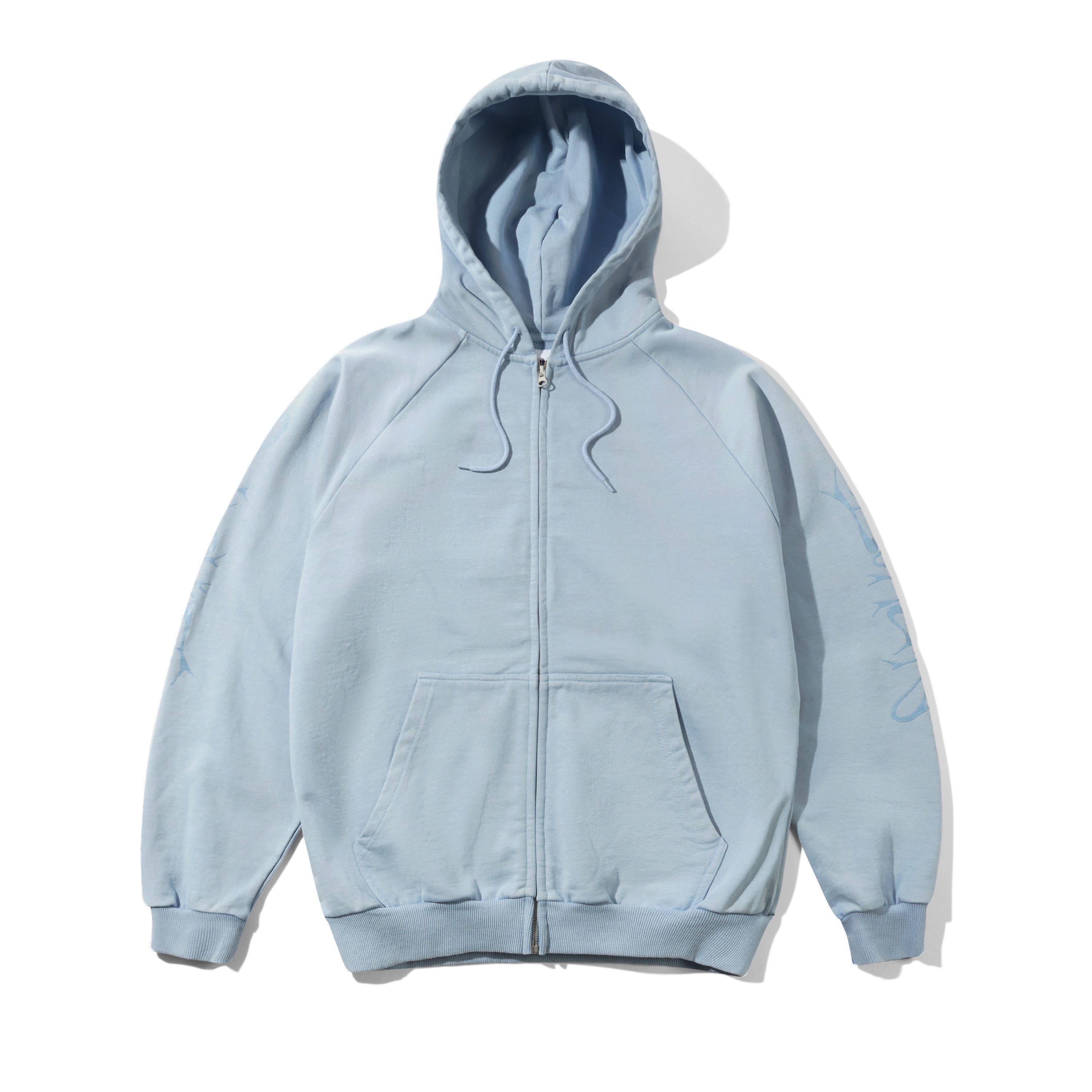 BUTTER SCRAWLING ZIP-THROUGH HOODIE - WASHED OCEAN