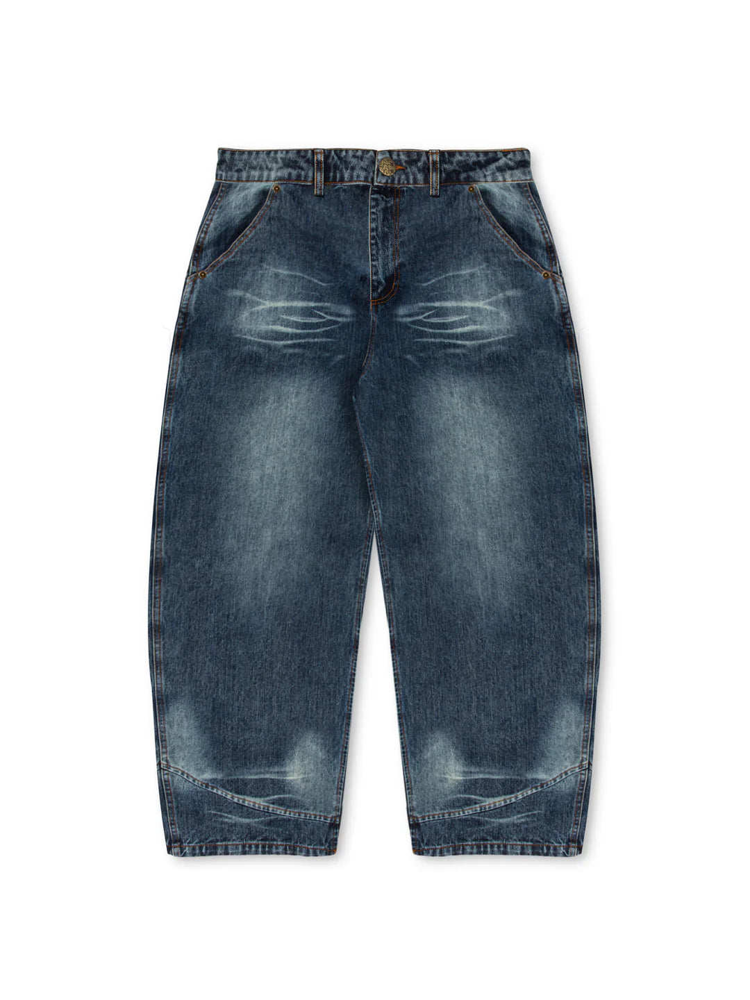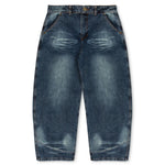 Introducing our 'Seeker' denim made from an extremely high quality and durable 100% cotton 13.2oz denim fabric and features a baggy balloon silhouette paired with a enzyme wash throughout the garment to achieve an extremely soft hang feel, however we made a conscious effort to exaggerate the wash in areas that would receive the most wear and tear for a more natural aged and worn in look.