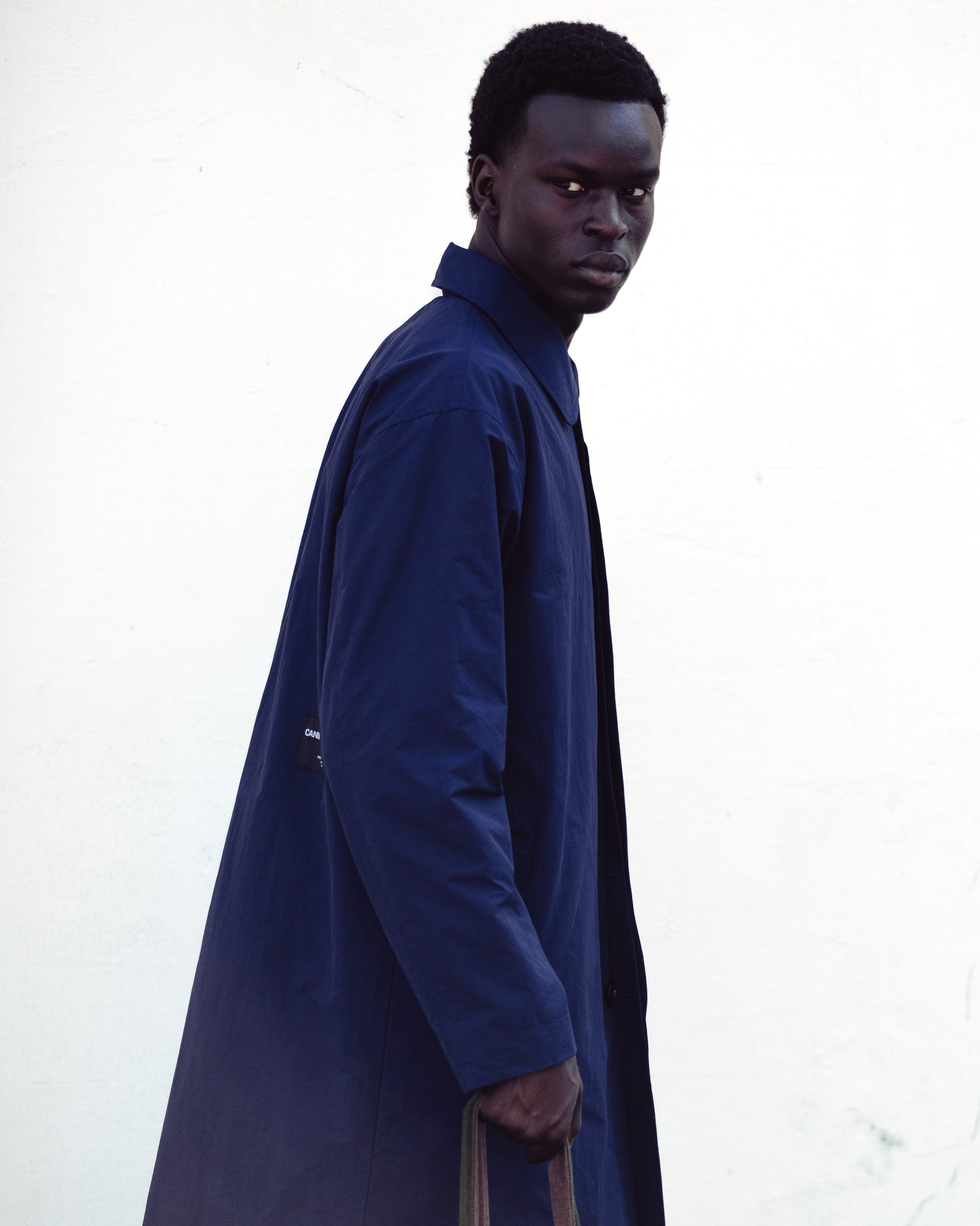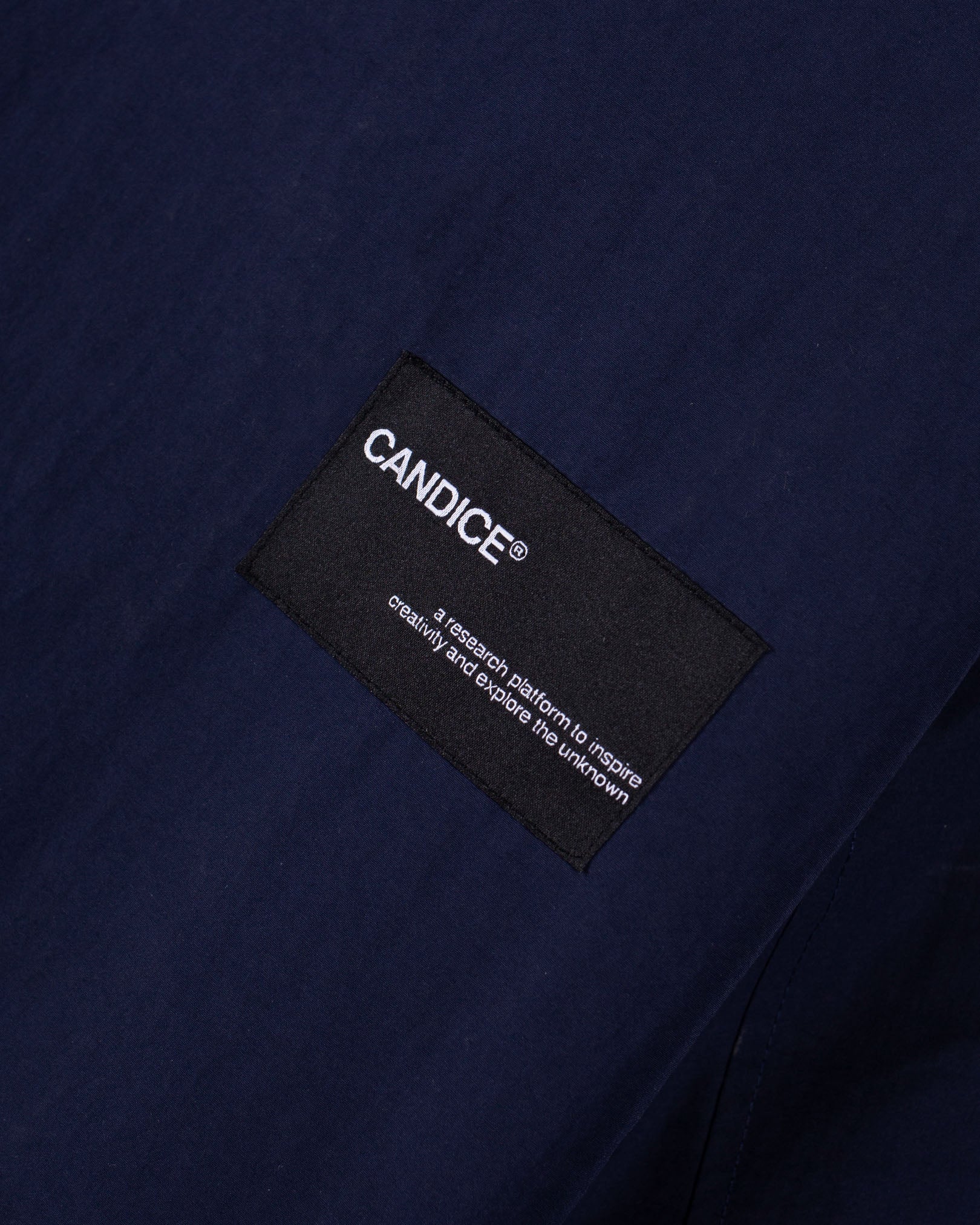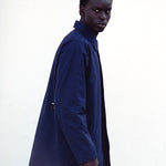 The Candice Clarke Mac Coat in navy, made from a cotton and nylon