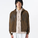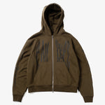 CANDICE Razor zip hoodie in brown. Made from a 405gsm brushed fleece fabric. Featuring a large front screen print, pouch pocket and a two-way zipper. Cropped, boxy fit.