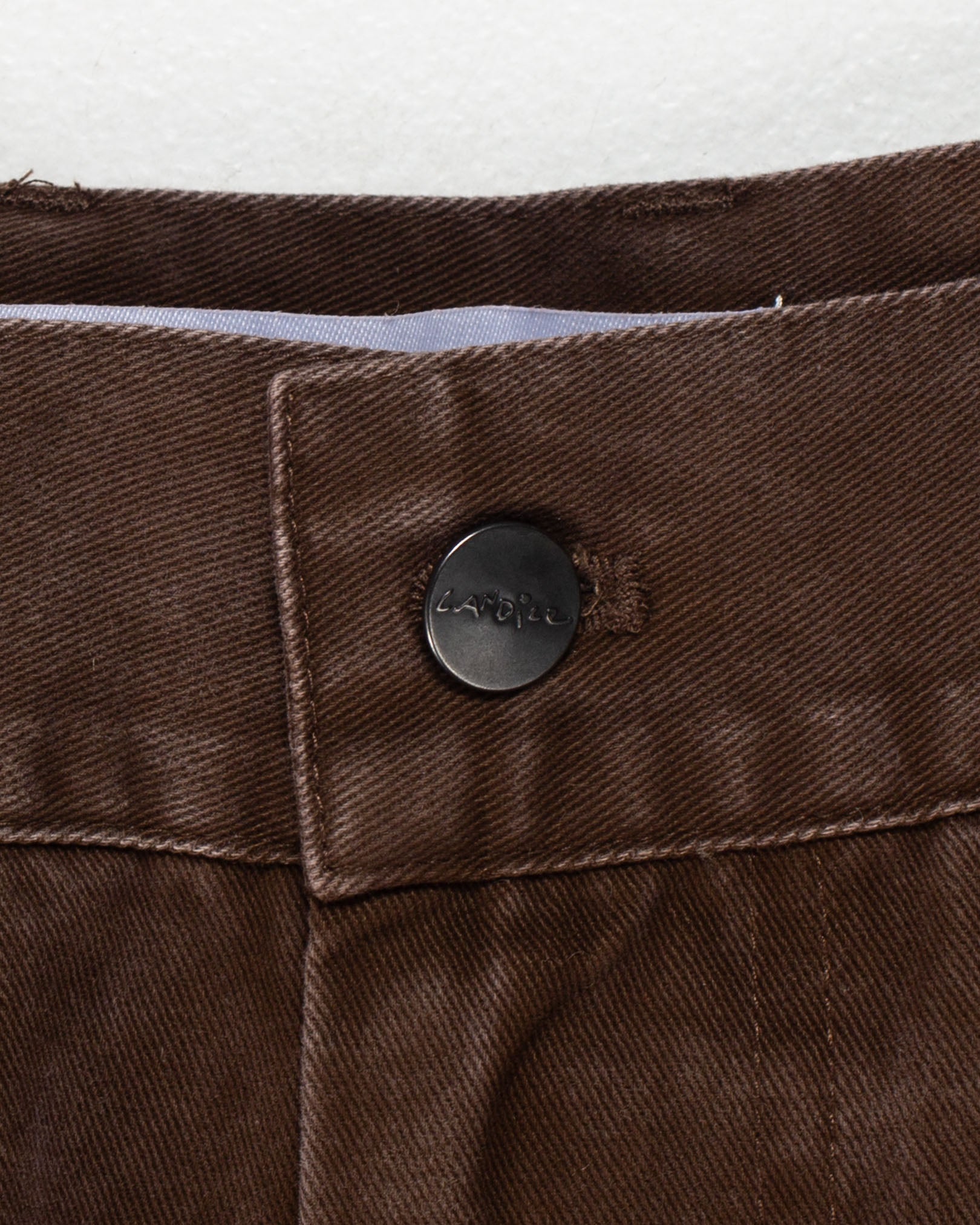 embossed leather patch on back waistband. Part of a set with
