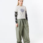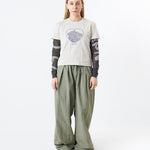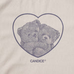 The CANDICE Together baby tee made from a midweight 200gsm washed cotton fabric. Constructed with colour-blocked arm and sleeve panelling. from A cropped, slightly fitted unisex shape that still allows for a relaxed drape. Finished with a silver screen print at the front.
