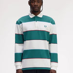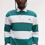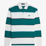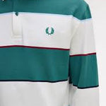FRED PERRY HEAVY WEIGHT JERSEY STRIPE RUGBY LS POLO SHIRT - SNOW WHITE