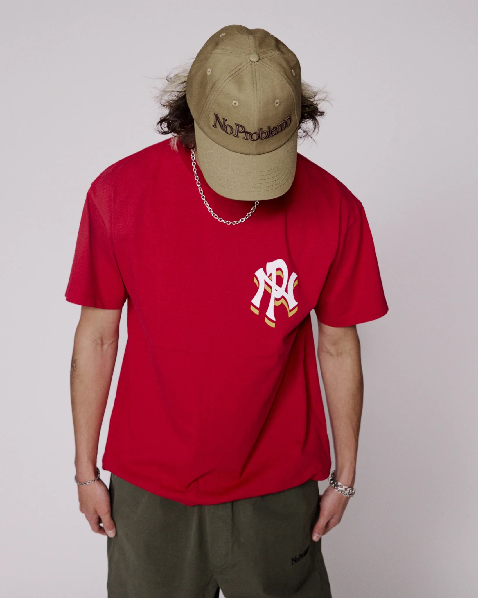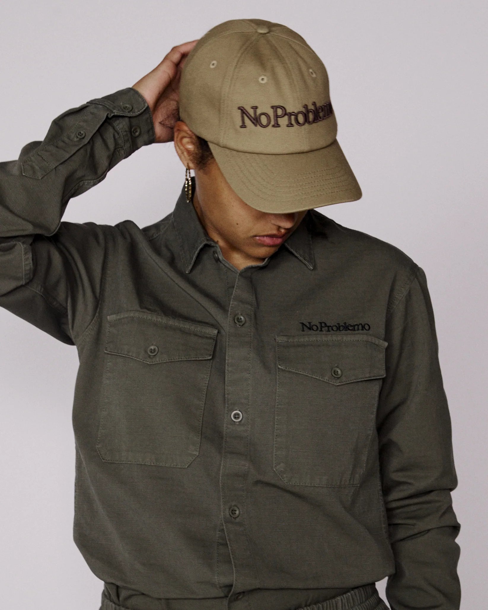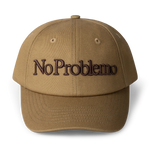 NP 6 panel cap made from 100% cotton drill with a plastic back strap.featuring a no problemo 3d front embroidery and a gothic alieno embroidery on the back.100% cotton