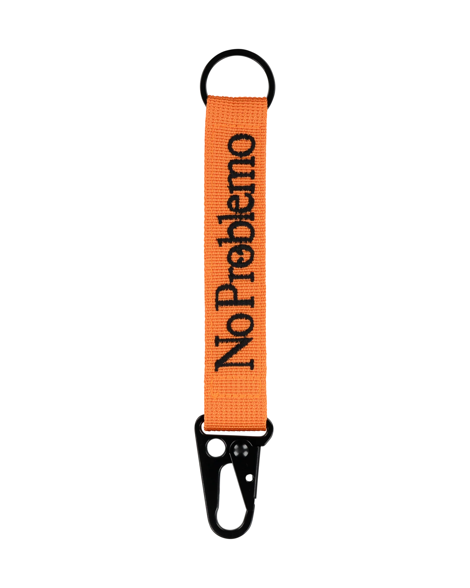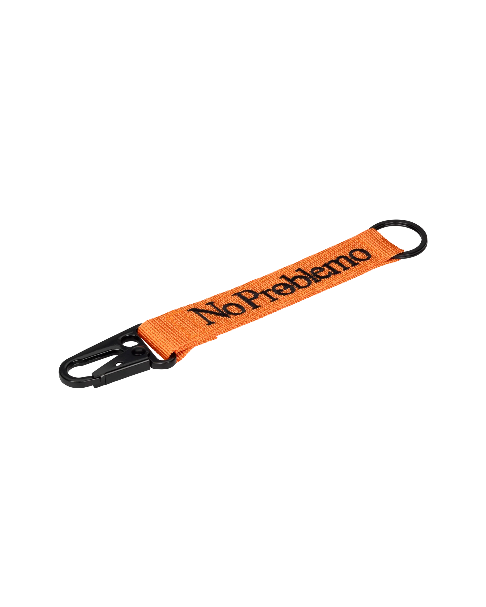 NP carabiner keychain with webbing strap featuring no problemo graphic.100% polyester nylon