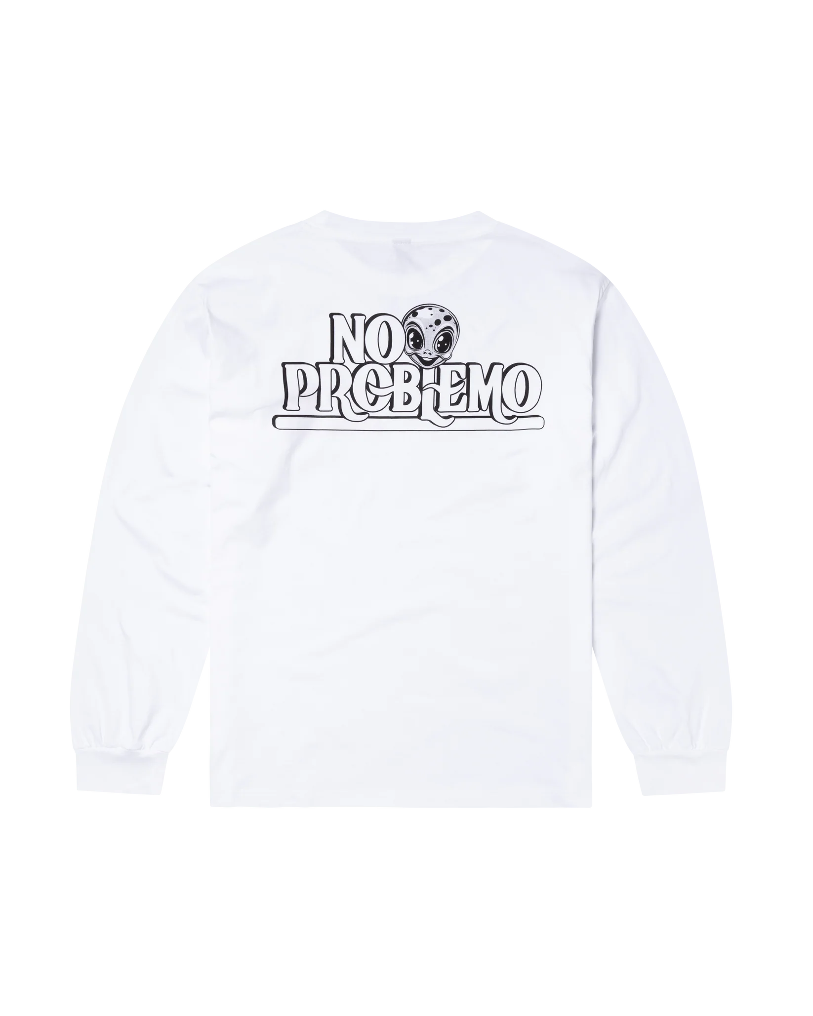 NP unisex long sleeve t-shirt made from 100% cotton, mid-weight jersey.featuring a 'happy shopper' graphic screen printed on the chest and back.