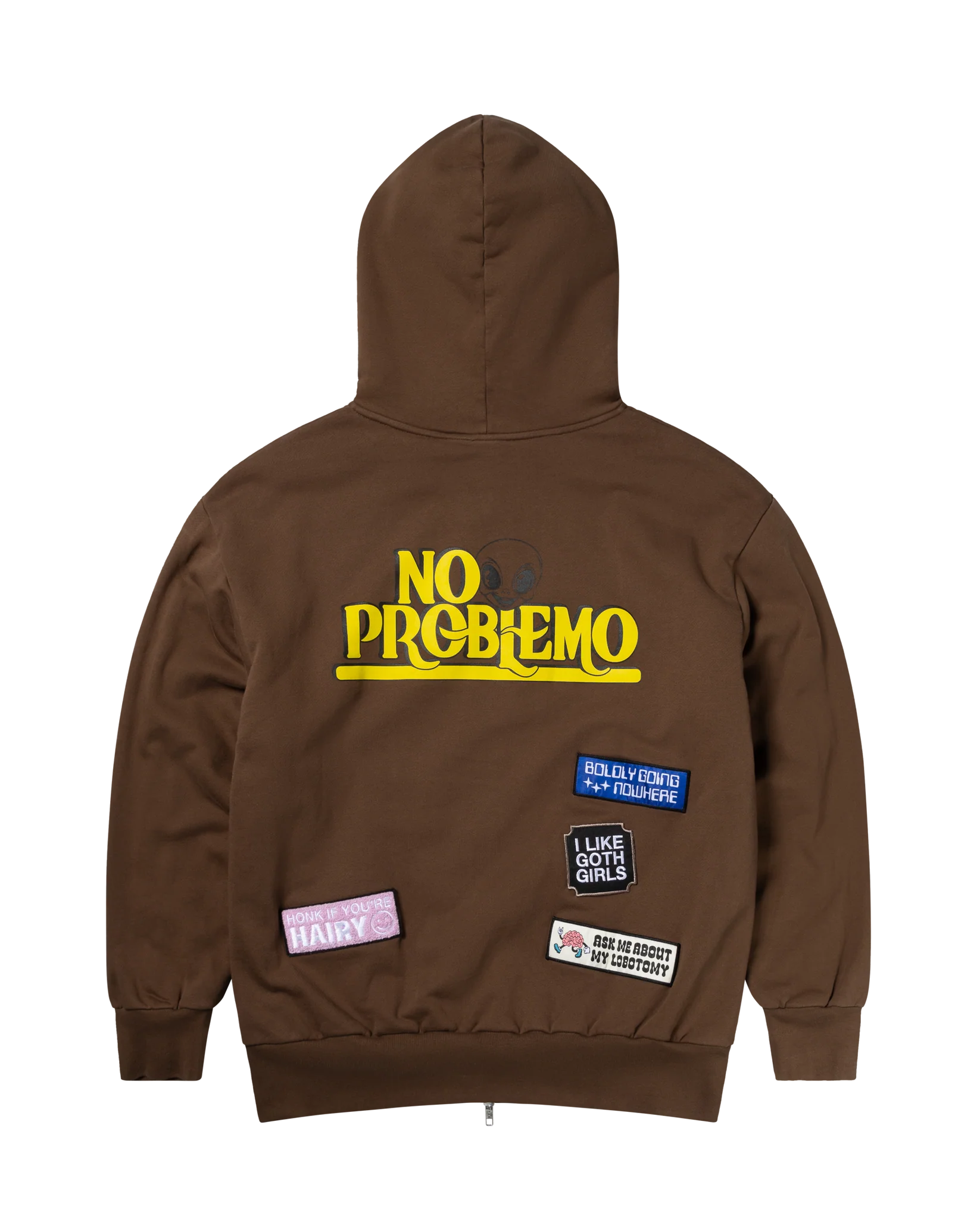 NP unisex double zip hooded sweatshirt made from brushed-back 100% cotton jersey fleece with a waffle lining.featuring seasonal graphic patches allover the garment and alien-o shopper screen-print on the back.100% cotton